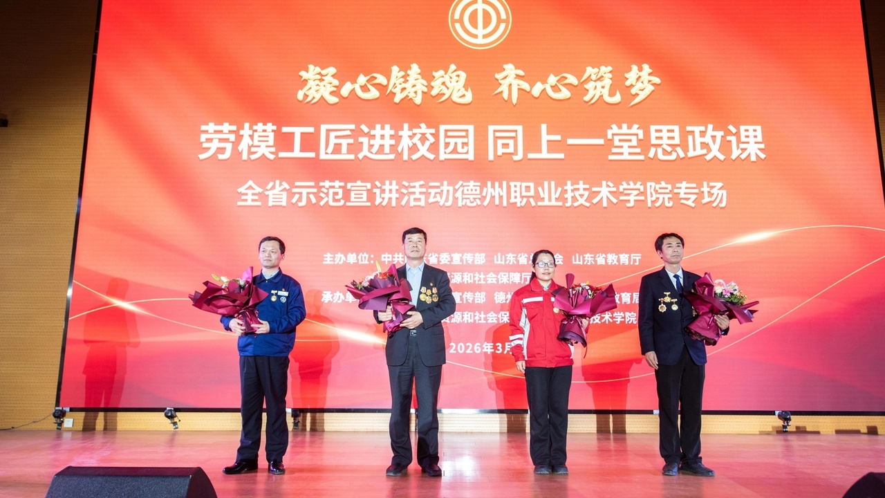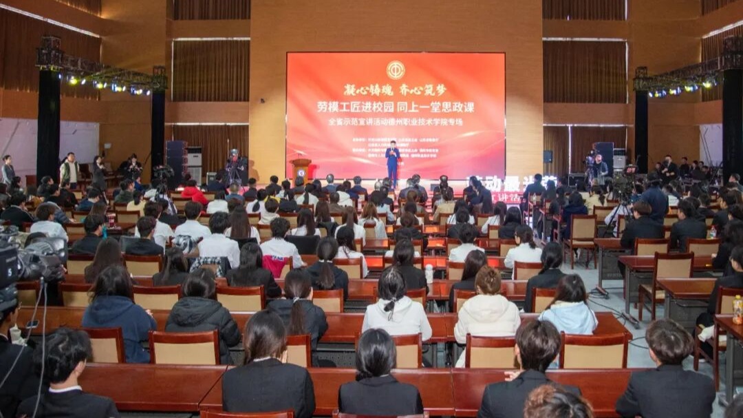 3月31日下午,“凝心铸魂·齐心筑梦——劳模工匠进校园 同上一堂思政课”山东省示范宣讲活动在德州职业技术学院举行。近400名师生齐聚一堂,共同聆听劳模故事,感悟劳动精神,汲取榜样力量。